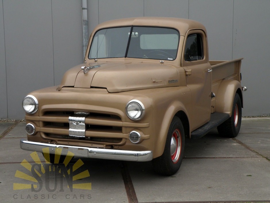 This very rare Dodge Job Rated, pick-up version was delivered in 1952. The beautiful bronze paint has patina. This car has beautiful chrome. This pick-up drives, brakes and shifts gear very well, but needs a little bit of technical work. Thanks to the rarity, this Dodge is a very interesting project.