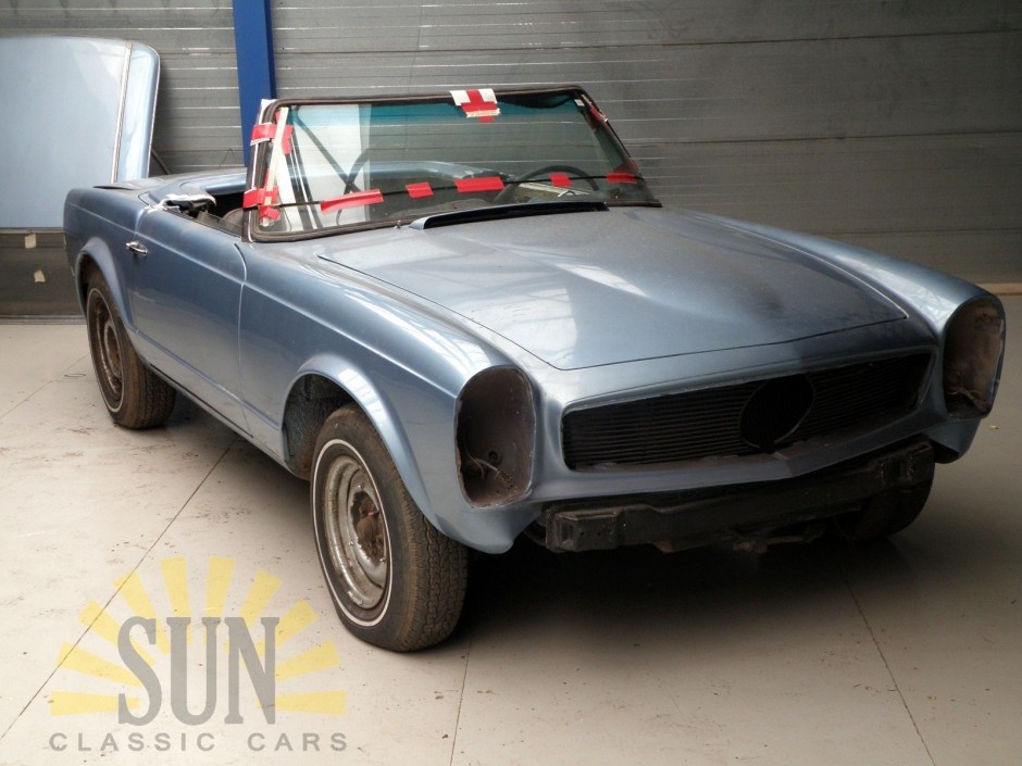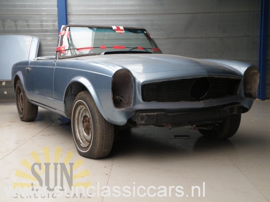 De productie van de Mercedes-Benz 230SL begon in juni 1963 en eindigde op 5 januari 1967. Het dual-circuit remsysteem had schijfremmen voor en power-assisted trommelremmen achter. Deze Mercedes-Benz 230SL komt uit het bouwjaar 1965. Hij is voor een deel al gerestaureerd maar moet nog afgemaakt worden, er zit nog laswerk aan de auto. De 230SL is gespoten in de kleur blauw wat perfect matcht met het donkerblauwe interieur. De motor van de auto draait met de hand. Deze 230SL is voorzien van een originele Km-teller. De Mercedes-Benz 230SL is uitgerust met een originele 6 in lijn motor met 2306 cc en 170PK. Deze Mercedes-Benz 230SL is voorzien van Amerikaanse papieren en invoerdocumenten zijn aanwezig.