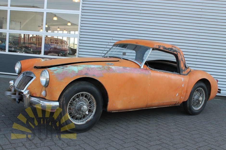 1957 MGA roadster. A good base for restoration. Car has a 1498 cc, 60hp engine and manual gearbox. This MGA has wire wheels and a hardtop. A beautiful project for hobbyists.