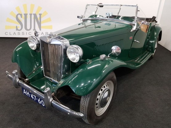 Deze zeer leuke MG TD komt uit het bouwjaar 1950. De MG TD is uitgevoerd in de geliefde kleur British Racing Green wat fantastisch staat met het beige lederen interieur. De originele matching numbers 1250cc 4 cilinder motor loopt goed. De MG TD is voorzien van Nederlands kenteken.